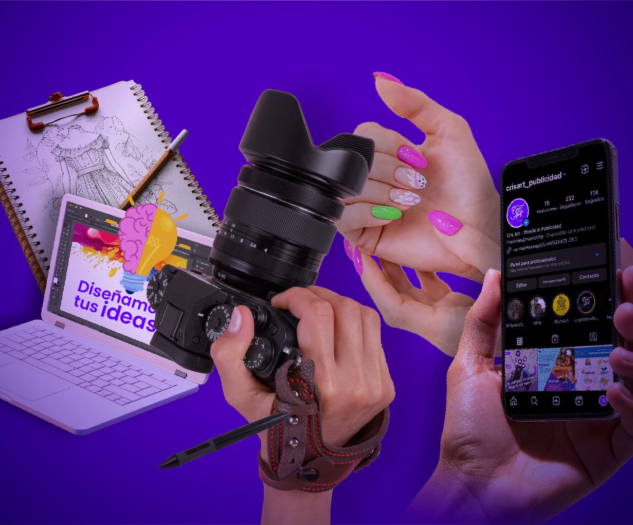 Fotografía, diseño gráfico, pintura, diseño web y diseño de moda y más servicios pensados para emprendedores y negocios.